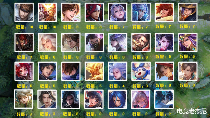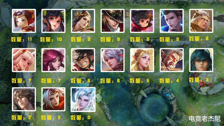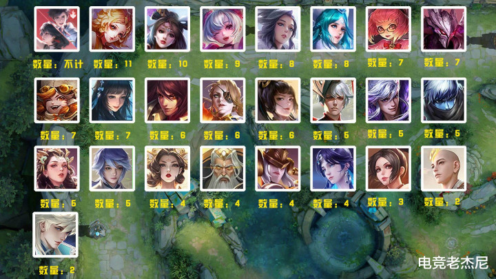 而他们的皮肤分布完全就是和早期的英雄热度榜有关系了,排在第一的自然是老少皆宜的鲁班七号!他和妲己一样是所有英雄皮肤之中数量最多的,高达11款!而其他数量较多的几位基本也都是版本的常青所以这个结果也情有可原~